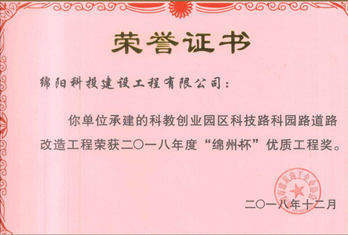 2018年度綿州杯優質工程獎
